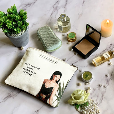A minimal canvas pouch with a beautiful print and an uplifting quote. These canvas pouches are light, spacious and environment friendly. These canvas pouches are light, spacious and environment friendly. Handcrafted in India from unbleached canvas these pouches are low maintenance yet are a statement in themselves.