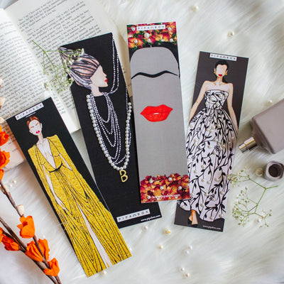 A set of hand painted and embellished bookmarks. These bookmarks have unique character to themselves and are hand painted and hand embellished, thus they have a personal touch to themselves. The chunky design of the bookmarks allows them to be accommodated into books of all shapes and sizes and does not loose itself in large books. They have a 3D quality to themselves thus can be used as decor apart from being bookmarks.