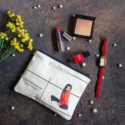 Use the pouches for storing your makeup, your essentials, medicines, as your pencil pouch or pair it with your monochrome outfit as a statement piece with a shock of colour.