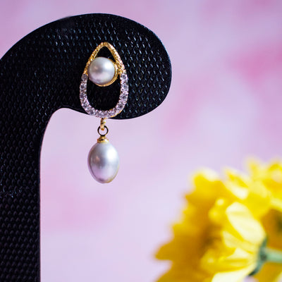 Embrace the Elegance of the Bulan Earrings. These exquisite earrings feature a delicate teardrop design, adorned with ash-colored pearls and shimmering precious stones. The handcrafted gold finish adds a touch of luxury, making them a versatile and captivating accessory.
