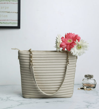 This dainty tote bag, with its petite frame, is handcrafted from the finest Nappa leather, featuring a quilted surface that adds depth, dimension, and a touch of elegance. The bag is accented with custom-designed hardware in a light gold finish, enhancing its luxurious appeal.