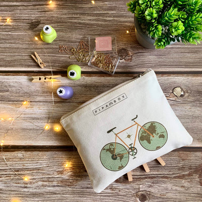 A lightweight canvas pouch with a minimal print, and an atlas theme. These canvas pouches are light, spacious and environment friendly. These canvas pouches are light, spacious and environment friendly. Handcrafted in India from unbleached canvas these pouches are low maintenance yet are a statement in themselves.
